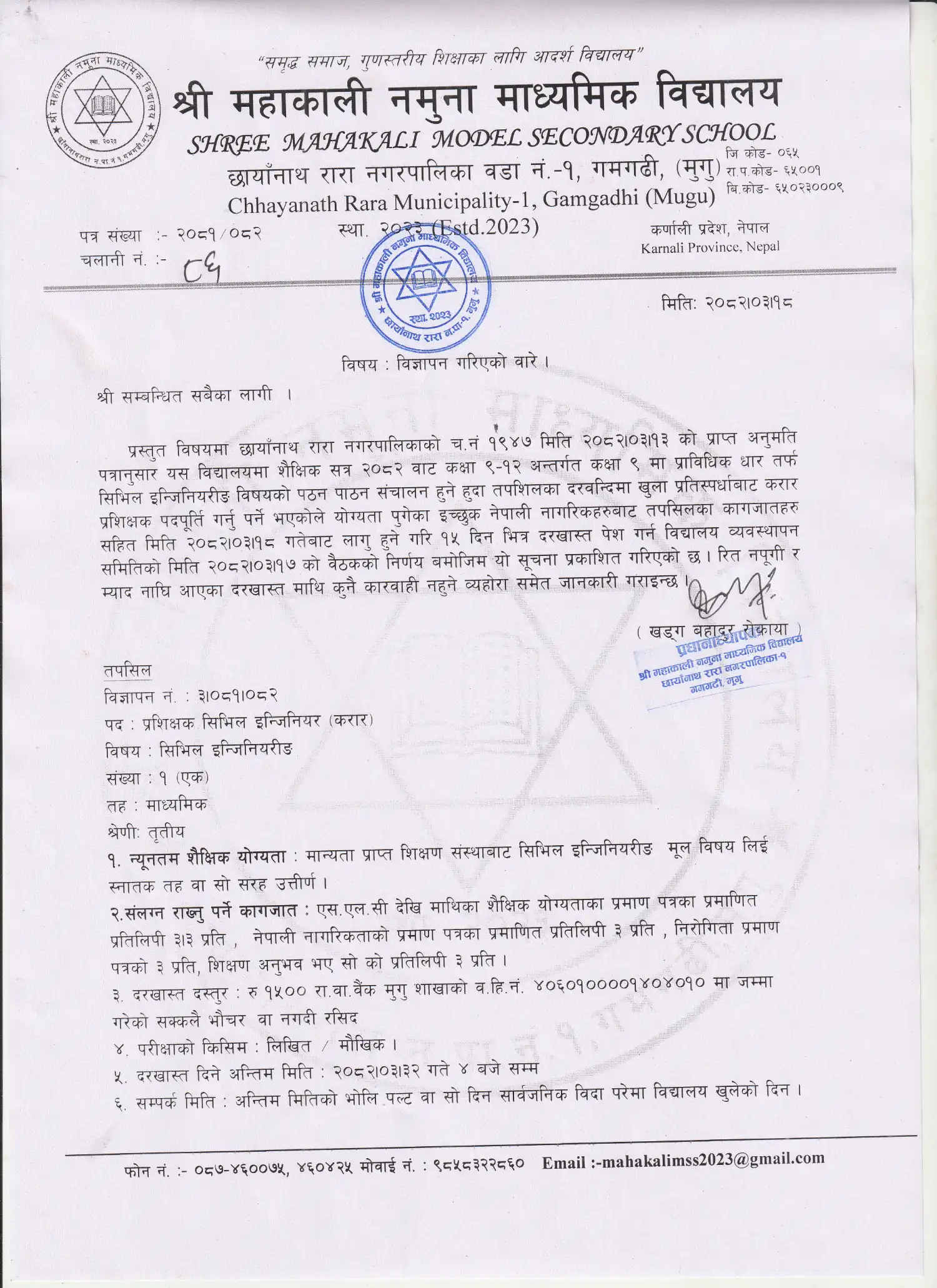 प्रविधिक धार तर्फ सिभिल इन्जिनियरीङ प्रशिक्षकको विज्ञापन सम्बन्धित सूचना